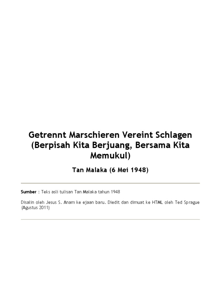 Getrennt Marschieren Vereint Schlagen Berpisah Kita Berjuang Bersama Kita Memukul